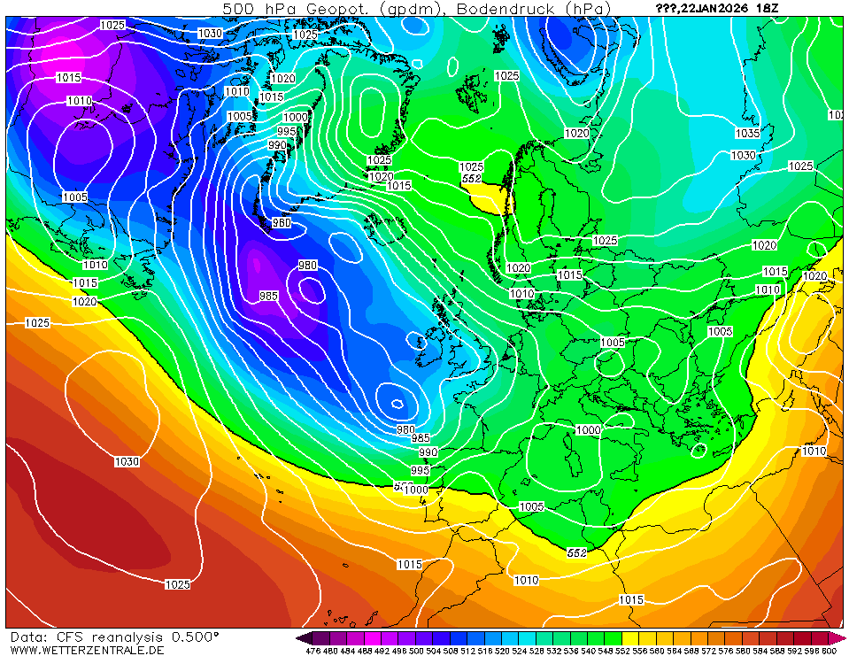 NCEP Climate Forecast System Reanalysis (CFSRv1) is een gekoppeld atmosfeer-oceaan-landoppervlak-zeeijs systeem om de beste schatting te geven over de 32-jarige periode 1979-2011. Na deze datum gebruikt wetterzentrale de CFSRv2 data (0,5 graad resolutie) die in realtime beschikbaar is. Technische details zijn beschikbaar in