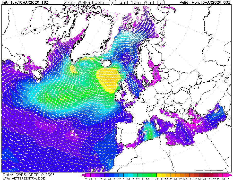 GWESActuele selectie. Hier bieden we golfprognoses aan van het atmospherische GFS model. Het is gekoppeld met de atmosfeer en het wordt 4 keer per dag uitgevoerd op basis van 0000, 0600, 1200 en 1800 UTC starttijd en biedt voorspellingen tot 384 uur.